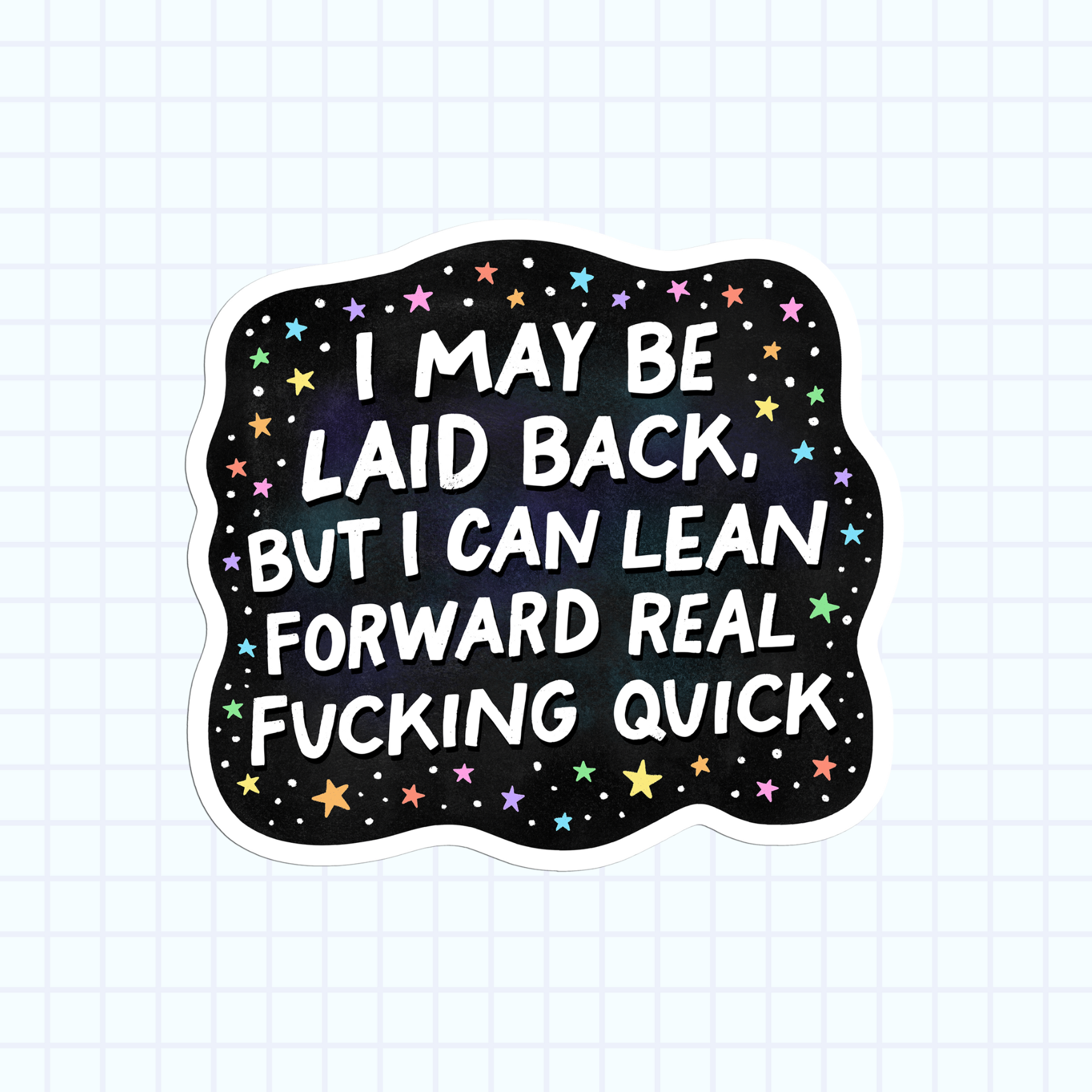 I May Be Laid Back, But I Can Lean Forward Real Fucking Quick laminated sticker.
